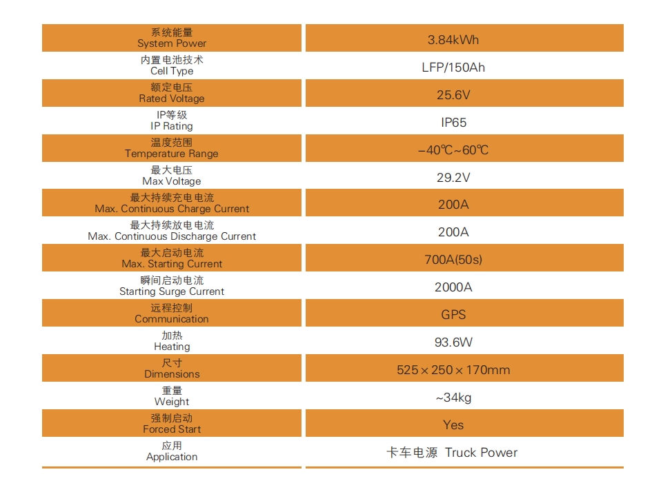 超大能量储备:3.84kWh磷酸铁锂电池,支持卡车长时间驻车用电需求。